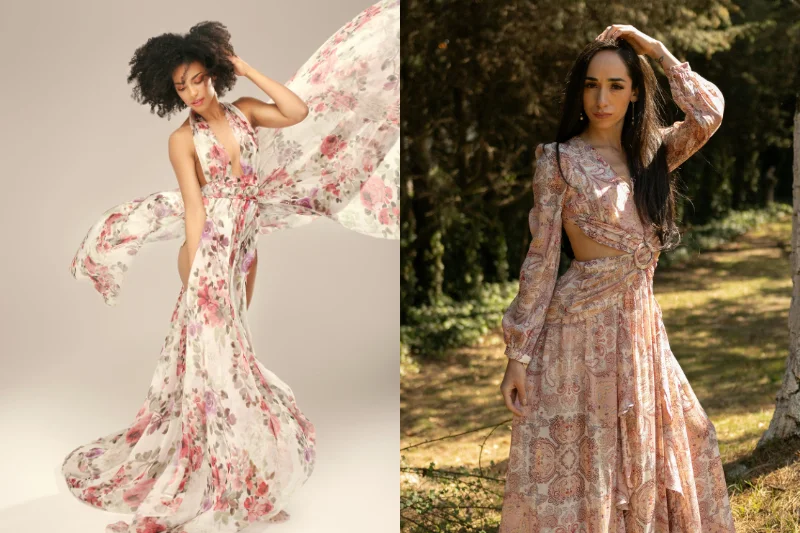Western doesn’t always have to mean jeans and boots. A flowy boho maxi dress with floral prints, fringe details, or earthy tones is a perfect nod to Western fashion. Pair it with suede ankle boots, a wide-brimmed hat, and a crossbody fringe bag. It’s the perfect look for spring and summer, ideal for festivals or outdoor events.