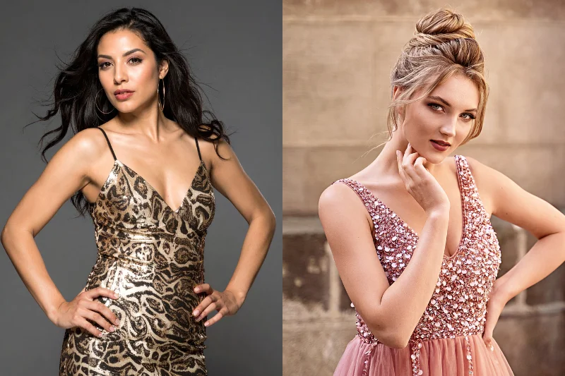 - Fabric & detailing: Satin, tulle, or silk gowns with beading, sequins, or embroidery.