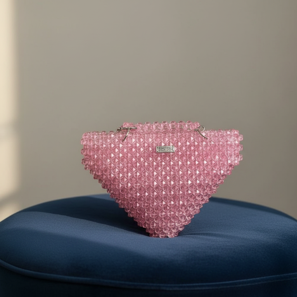The Blush Prism luxurious Beaded handbag is a terrific combination of cutting-edge format and undying elegance. Presenting a remarkable triangle prism shape, this purse is crafted to face out at the same time as retaining a mild, female charm. The delicate blush pink beads create a pearl-like texture that displays slight fantastically, making it an attention-grabbing accessory for specific activities.