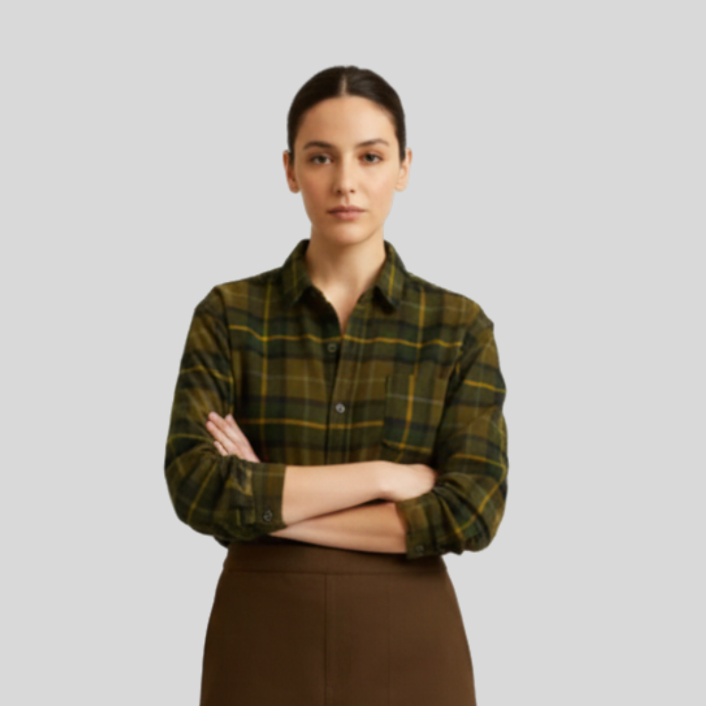 This shirt Top is a wardrobe staple! The classic plaid pattern in shades of green and yellow is both stylish and versatile. Comfortable fabric and relaxed fit make it perfect for layering or wearing on its own.