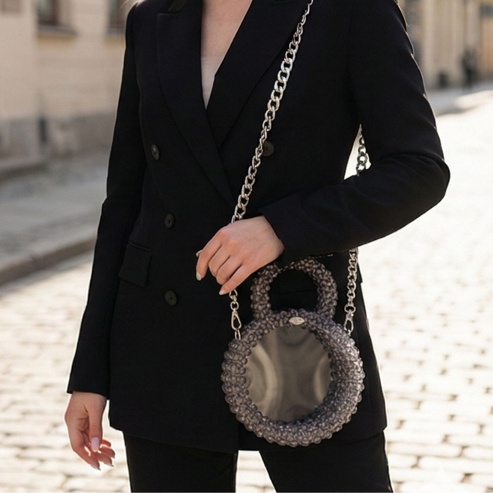 The double-circle handles aren’t simply stunning—they upload structural beauty, making the bag look like a luxurious fashion clothier collectible. Whether you’re attending a wedding, cocktail party, or styled photoshoot, this bag elevates every outfit with its luminous appeal. The obvious middle permits your necessities to reveal thru stylishly, giving the bag a stylish, futuristic appeal. In the meantime, the removable silver chain lets you placed on it crossbody or deliver it as a declaration hand held accessory.