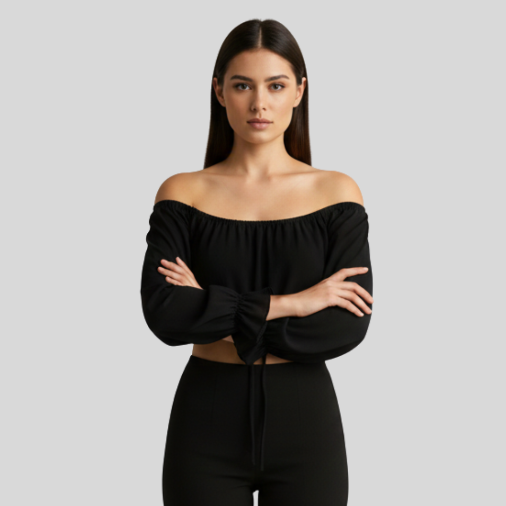 Effortless Chic with this Sheer Black Off-the-Shoulder Crop Top