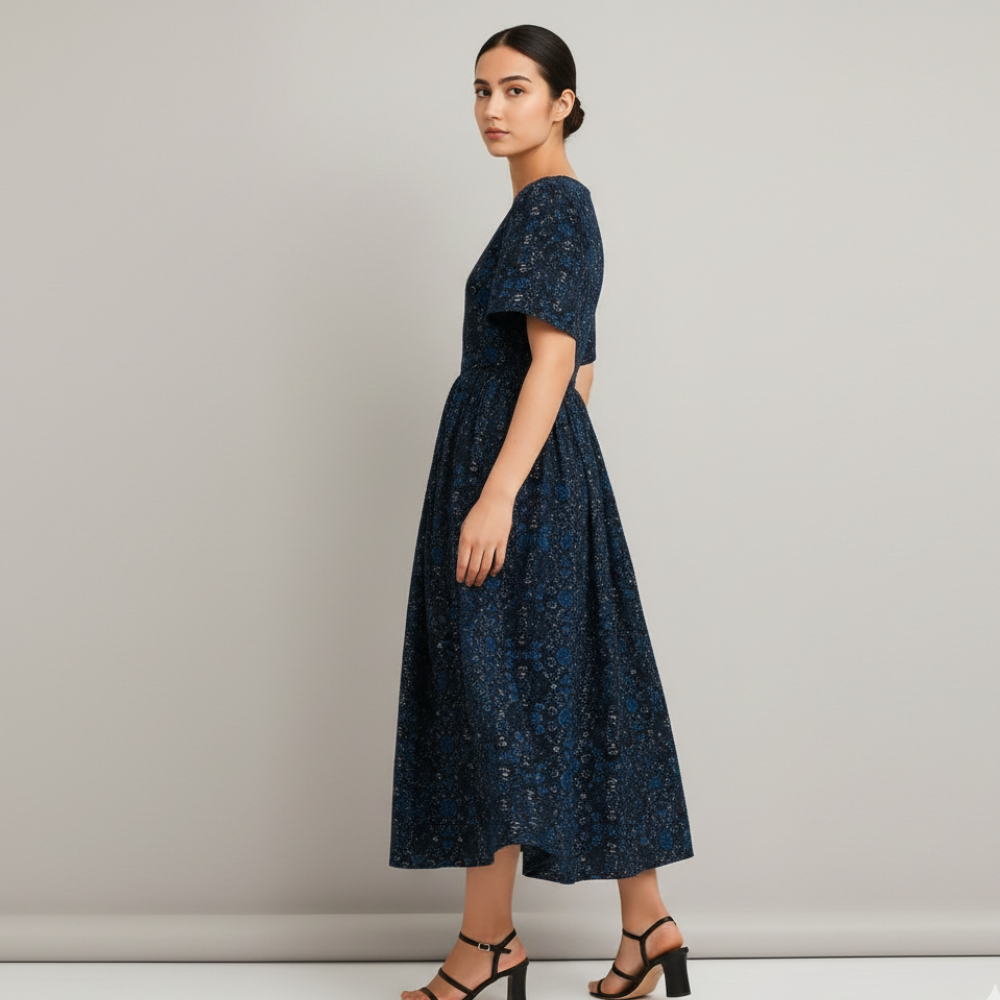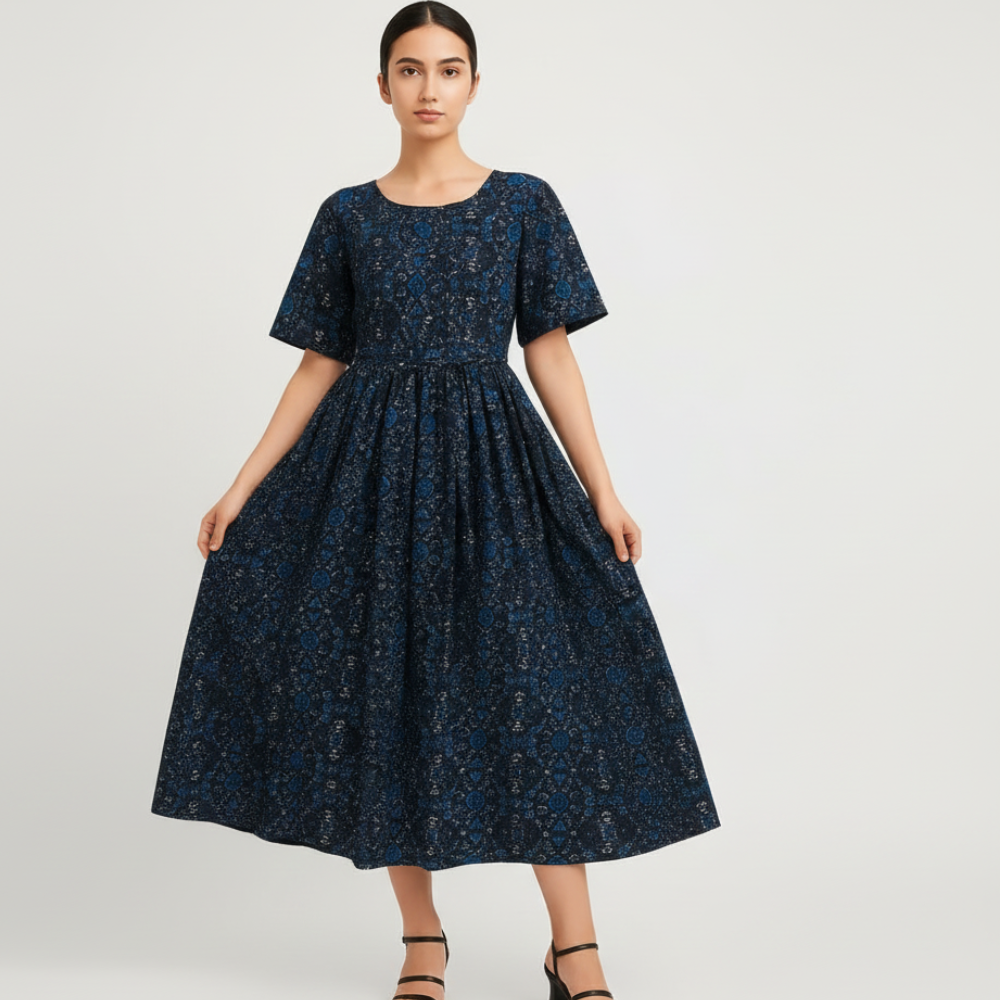 Embrace summer elegance with our Effortless Chic Breezy Floral Dress for Women. Featuring a flowy silhouette, vibrant floral print, and charming pleated details, this dress balances romance with ease. The gathered waist offers flattering shape, and three-quarter sleeves add a touch of graceful coverage. Ideal for brunches, garden outings, or relaxed evenings. Pair it with sandals for day looks or heels & a clutch for evening flair. Includes free delivery across India when you shop at Jhanvi Fashion.