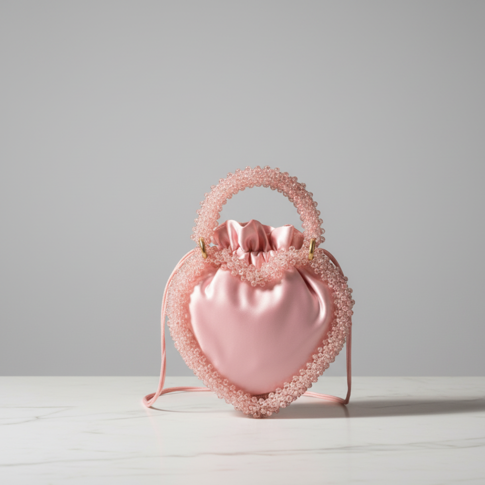 Product Name Blush Heart Satin Beaded Mini Handbag