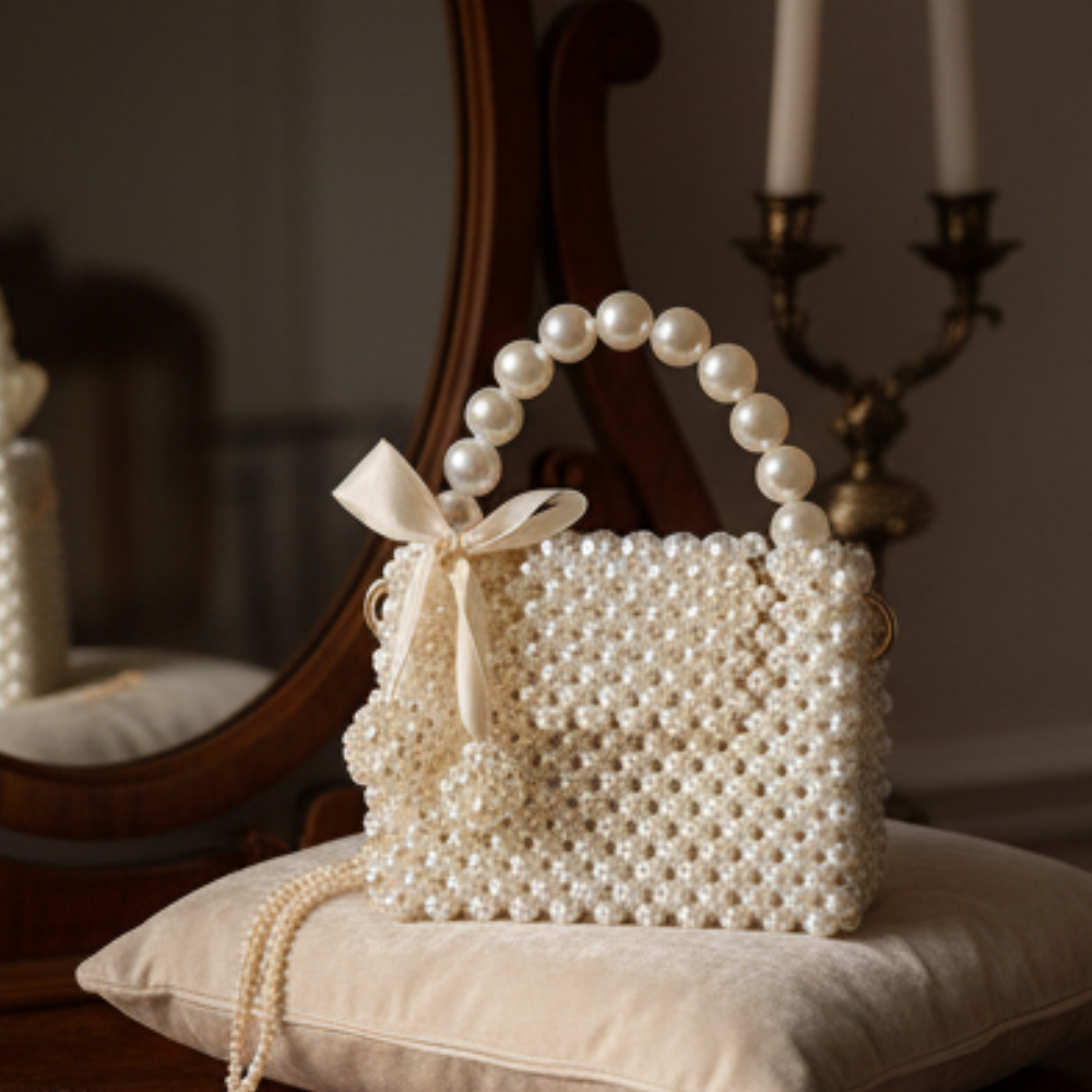 Product Name Ivory Grace Pearl Beaded Mini Handbag
