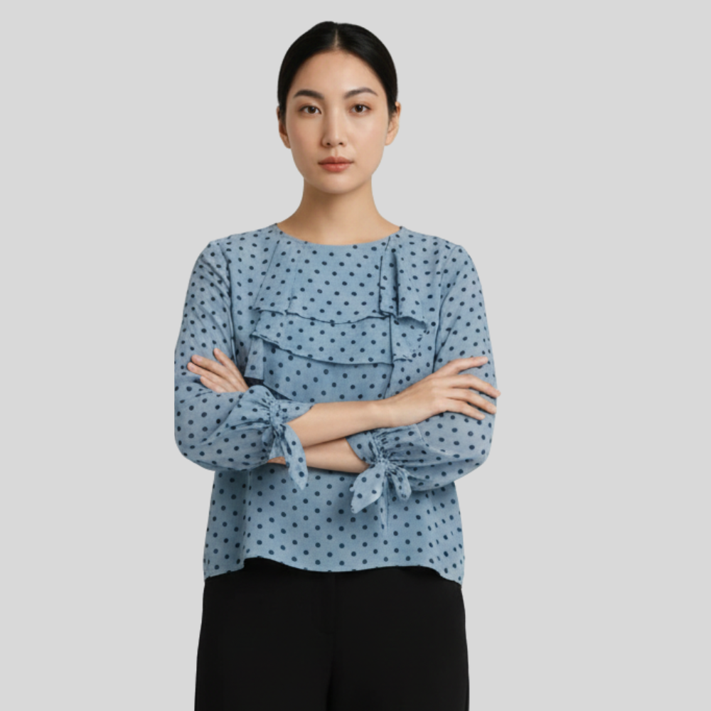 “Light blue polka dot ruffled top women – Jhanvi Fashion”Playful Polka Dot Top