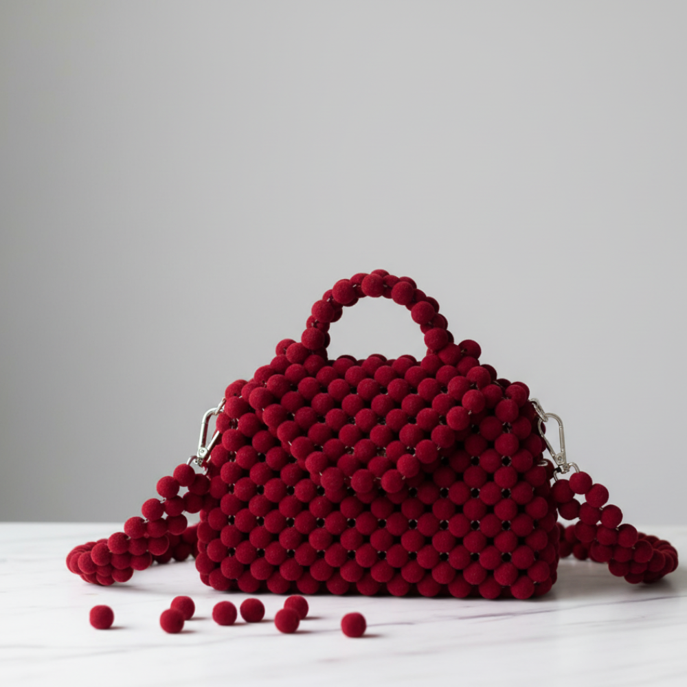 Step right right into a international of plush high priced with the Red Velvet Pom Beaded Mini Handbag , a statement accessory crafted for ladies who love ambitious color, clean texture, and standout fashion. This handbag is designed the usage of hundreds of velvet-finished pom beads arranged in a handwoven sample, giving the bag a totally precise plush look and call. The deep crimson crimson shade makes it immediately sizable and specially stylish—best for events, festive outings, and stylish evenings.