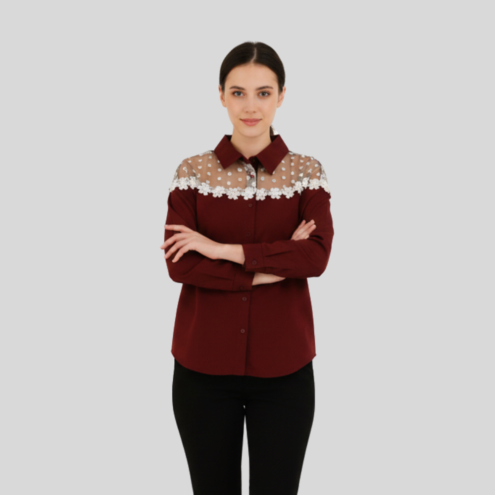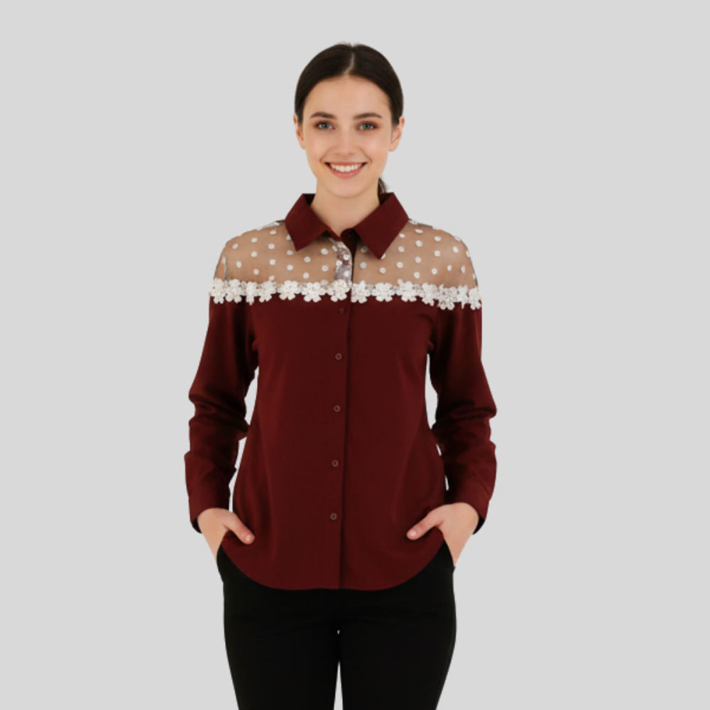 Romantic and Feminine Maroon Shirt with Lace Detail
